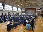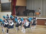 音楽部の子どもたちが当日の衣装を身に付け、一人ずつ紹介されている時の姿は、とても凛々しく、学校代表として立派な姿を全校児童に見せていました。紹介後に行った音楽部による合唱・演奏も素晴らしく、「もののけ姫」の歌声や演奏、「英雄の証」の演奏に、体育館にいる全ての人が聞き惚れていました。