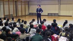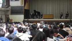 さっそく学年集会を開き、各担任からあいさつや、心構えなどを聞きました。今年度の学年目標は『卒業「 」』です。来年の3月にある卒業式を意識し、さまざまな自分を卒業していきたいと考えて決めました。うしろについている「 」は空欄です。どんなことを卒業するのかは、一人ひとりが決めていきます。大切なのは、自己判断、自己決定、自己表現です。