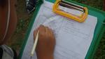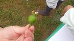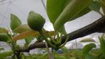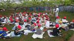 梨の木には、花が咲いていた跡に8~10個ずつたくさんの小さな実が膨らんできていました。今回学んだ「摘果」とは、その中から1つだけ厳選する作業のことです。子ども達はその残された実を観察し、メモを取ったり絵を描いたりしていました。お土産に、摘まれた梨の実をいただきました。