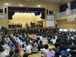 今日は、松戸市立松戸高等学校吹奏楽部の皆さんが「クリスマスコンサート」を開催してくださいました。高校生の元気いっぱいの演奏に子どもたちはとっても盛り上がっていました。クリスマス定番の曲から始まり、「美女と野獣」のミュージカルもあり、最後は「ビリーブ」を市松吹奏楽部の皆さんの演奏で合唱しました。高校生のキラキラした笑顔がとても印象的でした。東部小はクリスマス気分一色でした。市松吹奏楽部の皆さん、ありがとうございました。