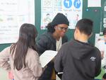 今日は5年生と千葉大留学生との交流会を行いました。英語「道案内」の学習をした後、千葉大留学生に東部小の校舎の道案内をする学習です。さらに、自分が紹介したい場所をペープサートやポスター、動画を使って英語で紹介する学習も追加しています。校庭や理科室、給食室など思い思いに紹介していました。校外学習の成果が早速あわられていて、英語を話すことに自信を持って交流をしていました。積極的な5年生の姿はとてもたくましく感じました。英語の学習は実践あるのみです!
