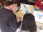6年生は、家庭科の学習でエプロンを作成しています。裁ちばさみで布を丁寧に切った後、仮縫いをして、ミシンを使います。保護者ボランティアにも参加していただきました。わかりやすく児童に教えていただき、ありがとうございます。縫い始めと縫い終わりは、返し縫いをして頑丈にし、丁寧に縫っています。ポケットの縫い方を工夫している児童もいました。