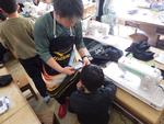 今6年生は、エプロンを製作しています。ひもは通るようにひも通し口を丁寧に縫わないといけません。そして、最大難関はポケットつけです。布の中ほどに着けるので、布が重なっていないかを確認しながらつけなくてはならず、慎重に作業をする必要があります。失敗しながら、糸をほどきながらようやく完成すします。完成した時の子どもたちの顔は、とっても嬉しそうで、自慢げでした。ご家庭でも「頑張ったね」と褒めてあげてください。