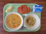 | 今日の給食は、ロールパン、かぼちゃのシチュー、サクサクポテトサラダでした。今日のシチューの主役かぼちゃは、中央アメリカ(メキシコ南部やグアテマラ周辺)が原産で、日本には戦国時代末期(16世紀後半)にポルトガル船によって伝来しました。日本へは、「カンボジア」を経由して九州に伝わったとされています。当時はカンボジアのことを、「カンボジャ」または「カンボチャ」と言っていたため、当初は「カボチャ瓜」などと呼ばれました。その後、「瓜」が省略され、「カンボジア」がなまって変化して「かぼちゃ」という呼び名が定着したとされています。かぼちゃの自然な甘みととろみは、特にクリームシチューと相性が良く、かぼちゃのシチューは、世界的に古い煮込み料理の技法と、日本で普及したクリームシチュー文化、そして身近な食材であるかぼちゃが組み合わさって生まれた、比較的新しい家庭料理と言えるのかもしれません。今日の給食もおいしかったです。 | ||
