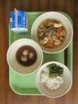 | 今日の給食は、昆布ご飯、ししゃもの胡麻揚げ、からし和え、豚汁でした。「豚汁」を「とんじる」と読むか「ぶたじる」と読むかは、日本人の間でもよく議論になるテーマが存在します。全国的には「とんじる」と読む人が圧倒的に多いのですが、これは「豚」(音読み:トン)と「汁」(訓読み:じる)を合わせた重箱読みです。しかし、北海道と九州の一部(福岡、長崎、佐賀など)では「ぶたじる」と読むことが多いのです。これは「豚」(訓読み:ぶた)と「汁」(訓読み:じる)を合わせた湯桶読みで、元々の読み方に近いとされます。 「ぶたじる」と呼ばれていたものが、昭和時代に「とんかつ」がブームになり、「豚」を「とん」と読むことが一般的になった結果、東京を中心に「とんじる」の読みが全国に広まったのではないかという説が有力です。どちらにしても、今日の東部小の豚汁もおいしかったです。 | ||