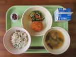 ごしきごはん カリカリがんも ごまあえ みそしる ひとくちぶどうゼリー ぎゅうにゅう |
