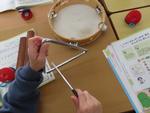 1年生はALTの先生の授業です。フィリピンのクリスマスの紹介をしていただき、日本のクリスマスと比べていました。2年生は音楽の学習です。色々な打楽器を触り、音を出し、曲のイメージに合った楽器を選んでいました。素敵な演奏ができるといいですね。