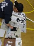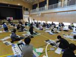 今日は、6年生の書き初め大会です。「新春の朝」を体育館で書き上げました。4月から中学校へ進学する期待と希望を「新春の朝」に込めて書きました。洋服が汚れてもいいように黒ずくめで登校してきた児童もいました。「集中!」とか「いい感じ!」次は「春の字に注意だな」など自分と向かい合いながら一生懸命取り組んでいました。今年の6年生の素晴らしいところは、どんなことにも夢中になって取り組むことができるところと、自分たちで学校生活を楽しむことができるところです。さすが、東部小の顔です。