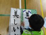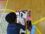 今日は3・4年生の書き初め大会です。3年生は「ゆき山」4年生は「初もうで」です。初めて太筆を持った3年生ですが堂々と書いていました。「ゆき山は上手にかけても、自分の名前が上手にかけない!」と悩んでいる子もいました。4年生はもう慣れた手つきで準備も片付けも上手に行っていました。文字を書くときもしっかり手をつき、よつんばいになって、力強い文字を書いていました。どの作品も大きく文字が書かれ勢いのある書き初めでした。ご家庭でたくさん練習したことが自信につながり勢いのある文字がかけるのだと思います。冬休み中のご家庭でのお声かけに感謝いたします。