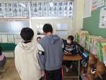 今日は、4・5・6年生の読み聞かせでした。2冊の用意してくださった読み聞かせサポーターの方もいました。横から文字を見て読むのって結構難しくて、サポーターの皆さんがたくさん家で練習してくださっているんだなあと感じました。その熱意が伝わるのか、子どもたちは真剣に聞いていました。6年生の教室では英語のテストを行っていまいました。一番の思い出を英語で伝えていました。一番多かったのは、修学旅行の思い出です。中でも「にゃんまげソフトが美味しかった」と話している子どもが多かったです。タブレットを使っての学習では「卒業文集」を書いています。タブレットの方が、直しやすいくていい!といった意見が聞かれました。6年生は卒業に向けて1日1日を大切に過ごしています。
