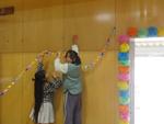 明日の「6年生を送る会」に向けて児童会役員が前日準備をしていました。各学年が担当となって作った、タイトルやお花、わっかを児童会役員が掲示していました。素敵な体育館となりました。明日が楽しみです。
