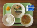 ご飯・鯖のゆず味噌煮・青菜の中華和え・けんちん汁・いよかん・牛乳