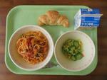 13日(金)   トマトとツナのスパゲッティー・枝豆サラダ・チョコクロワッサン・牛乳
