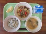 26日(木)   わかめご飯・生揚げのゴマダレかけ・昆布茶和え・豚汁・牛乳