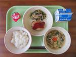 17日(火)   ご飯・しゃきしゃきハンバーグ・青菜ともやしのソテー・かきたま汁・一口アセロラゼリー・牛乳