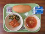 24日(火)   コッペパン・いちごジャム・クリスピーチキン・青菜とコーンのソテー・ミネストローネスープ・牛乳