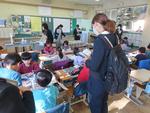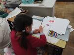 学年掲示板には「団体競技」の招集カードが掲示され、子どもたちは土曜日を楽しみにしています。体育館では書き初めの練習が行われています。先週は5年生、6年生が練習をしました。今日は4年生、明日は3年生です。地域から習字の先生をお招きして指導をしていただきました。身体を置く位置、手を置く場所、見本を置く場所など基本的な形を教わり、一文字一文字注意点を聞きながら書き上げました。大きく力強い文字が書けていました。