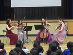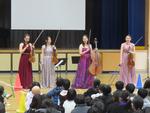 今日は、カルテット・トパーズのみなさんにお越しいただき、素敵な演奏を聴かせていただきました。クイズあり、楽器の紹介あり、合唱ありとあっという間に時間が過ぎ、とても楽しいコンサートとなりました。音楽の苦手な子も「音楽を聴くって楽しいなあ」と思っていてくれたら嬉しいです。