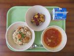 | 8日(水) | ホイコーローどん もずくとたまごスープ ポテトとだいずのあまずあえ 牛乳 | |