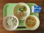 ごはん さけのたつたあげ くきわかめのきんぴら まめまめじる きっかみかん 牛乳 |