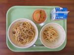 | 今日の給食は、和風ボンゴレスパゲティ、サクサクポテトサラダ、チョコっとかぼちゃケーキでした。ボンゴレとは、「アサリ等の二枚貝」のことを指します。「ボンゴレ・ビアンコ=アサリ等の二枚貝を使った白いパスタ」を意味します。この場合の「白」とは「トマトを使わないもしくはクリームソース系」を指します。ピッツァでも、お店によっては「ビアンコピッツァ=トマトソースを使わないピッツァ」とメニュー表記しているところもあります。ちなみに、トマトソースをからめたものは「ボンゴレ・ロッソ」と言います。「ロッソ=赤」の意味です。さらに、ジェノヴェーゼをからめた緑色の「ボンゴレ・ヴェルデ」、イカスミ仕立ての「ボンゴレ・ネロ」という料理もあります。今日の給食は「和風ボンゴレ・ビアンコ」とも言えますね。今日の給食もおいしかったです。 | ||