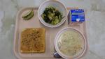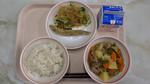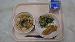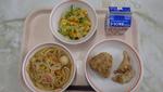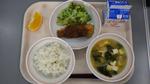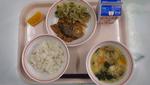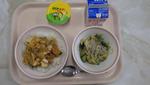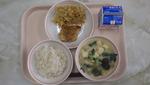 9/10(水) | 「ご飯」「あじのユーリンチーソースかけ」「わかめサラダ」「卵入りキムチスープ」「バナナ」「牛乳」 | |