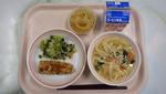 「ご飯」「あじのかわり揚げ」「ひじきサラダ」「キムチスープ」「牛乳」 | |