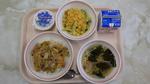 「五目チャーハン」「あげ餃子」「ナムル」「卵とコーンの中華スープ」「牛乳」 | |