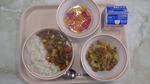 「豚肉と大豆のカレーライス」「ツナサラダ」「フルーツポンチ」「牛乳」 | |