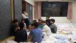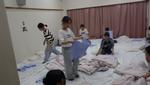 キャンプファイヤーは18時30分開始。すでに真っ暗で、宿舎からキャンプファイヤー場へ向かうにも、暗い道を進んでいきました。突然あらわれた転々とした明りに導かれ、入場。点火、歌、ゲーム、ダンスと盛り上がりました。楽しい時間はあっという間に過ぎ、火の勢いも小さくなってきてエンディングへ。子どもたちの楽しい様子が印象的でした。宿舎に戻って、お風呂と就寝準備。リーダー会議を経て、部屋のメンバーに伝えて一日の活動が終了しました。たくさん活動した1日目。ぐっすり眠れた人も多かったと思います。