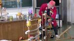 1年生で特別授業を実施しました。くまごろう先生に来ていただき、昔遊びのコマ回しを教えてくださったり、人形劇を見せてくださったり、大きなピタゴラスイッチにチャレンジたりと楽しい時間を過ごすことができました。