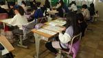 年明け恒例の校内書初め大会を実施しました。3~6年生は毛筆(だるま筆を使用)、1~2年生は硬筆になります。今年は体育館が空調工事のため使用できず、中・高学年も教室で行いました。6年生は「新春の朝」5年生は「美しい空」1年生は「お正月」2年生は「元気な子」です。3・4年生は明日行う予定です。それぞれ集中して取り組みました。