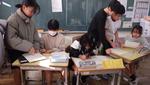 今日は3・4年生の校内書初め大会でした。課題は、3年生が「ゆき山」4年生は「初もうで」です。子どもたちは、冬休み前から練習を重ね、今日に臨んでいます。「家で練習した時は上手にかけたけど、うまくかけるかな」と不安になっている子や、「1枚かくのに15分かかった」と時間をかけて取り組んでいる子など、さまざまです。集中して、一番上手にかけた作品を展示します。