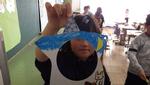 2年生の図工の時間を見てきました。紙で作るオリジナルけん玉を作っていました。手持ちの部分は、基本の形はあるものの、自分で工夫することができます。また玉の部分は輪になっていて、その形やイラストも自分で考えます。さらに、子どもによっては、場所に点数が書いてあり輪をひっかけた部分によって点数化できるように作った子もいました。子どもたちの想像力って、素晴らしいです。