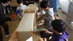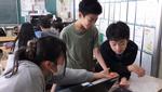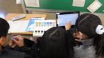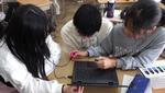 6年生が理科の授業でプログラミングに挑戦していました。「発電と電気の利用」の単元です。暗くなると明かりが付く街灯や、人が近づくと動き始めるエスカレーターにもプログラミングがされています。子どもたちへの課題は、①ボタンが1回押されたら「ピアノのレ」の音が鳴る。②ボタンが1回押されたらLEDが点灯して「ピアノのミ」の音が鳴る。などの課題にチャレンジ。仕組みを理解すると、次々にクリアしていきました。クリアしたグループには更に追加のレベルアップ問題が用意されています。グループで試行錯誤しながら学んでいました。