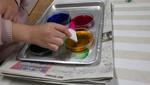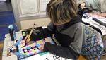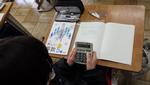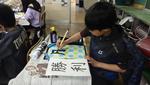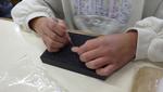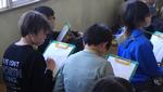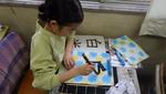 3・4年生の書写の最終課題として、半紙を色で染めたうえに自分の好きな文字を書くという授業をしていました。色で染めた半紙も、一人一人模様や色合いが異なり、素敵でした。その上に一発勝負で文字を書く!その前に普通の半紙で練習するものの、緊張です。子どもたちが書いた文字、その作品は唯一無二の作品です。