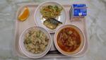 2月・3月の給食の献立に、6年生が家庭科の授業で立てた献立を一部採用しています。今日は6年生が考えたメニューでした。「とり五目御飯」「ミネストローネスープ」「ナムル」「さばの塩焼き」「デコポン」「牛乳」です。今日のメニューのテーマは「万博」です。栄養や彩り、主菜・副菜のバランス、予算等を考えて立てています。クラスでプレゼンをして、選ばれたメニューが献立になります。