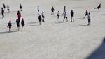 体育の授業では、サッカーに取り組んでいました。チームに分かれ、試合にチャレンジ。6チームあり、3コート作って試合をしていました。途中はわかりませんが、チームごとに自分たちの課題は何か考え、作戦を立てたり、練習したりしながら試合に繋げているのだと思います。最後はみんなで片づけまでしっかり行いました。