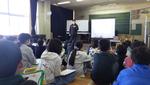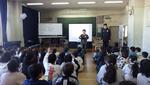 5年生の特別授業が行われました。講師は、デフリンピック男子バレーボール日本代表監督の村井先生です。昨年東京でデフリンピックが開催されたので、記憶に新しいと思います。5年生は総合的な学習の時間に福祉について学んでいます。その際、デフリンピックに注目し、グループごとに調べ学習を進めました。大きなポスターにして学校の東校舎の各階廊下に掲示をし、他の学年も見られるようにしました。今日はその学習の発展として、デフバレーの監督にお話を聞きました。子どもたちは熱心に聞き、ワークシートは表だけでは足りず、裏面にもびっしりと書いている子が多かったです。印象的だったのは、デフリンピックのメンバーは耳が不自由なので目をみて話をすること、監督である自分が「伝える」ことより相手に「伝わったか」が大切なこと、デフスポーツの認知度を上げたいという願いなど、裏話も含めていろいろとお話していただきました。あっという間に時間が過ぎてしまいました。デフリンピックについての学びが、より深いものになった時間でした。村井先生ありがとうございました。ちなみに村井先生の出身は松戸市だそうです!