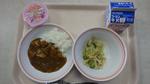 今日から1年生の給食が始まりました。最初は少し時間をかけて準備や片づけをします。徐々に慣れてきて、スムーズに配膳や食事、片づけができるようになってきます。1年生は体も小さいので食べる量も少ないです。もちろんお代りもできますが、最初の配膳の量を少なめになります。今日はチキンカレーでした。