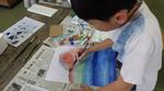 校内を回っていたら、4年生が図工の授業をしていました。いろいろな技法を使って自分なりの世界観を表現していました。スパッタリングをしたりストローやビー玉を使ってみたり、スポンジでポンポンと叩いてみたり、色を重ねてグラデーションにしてみたり。楽しく活動し、それぞれの個性が光る作品になりました。