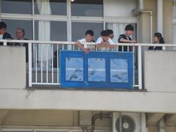 | 得点掲示板(最後に全校生徒が注目するところです) | ロープ張り(保護者席) | 生徒の応援席には、遮光ネットを設置しました | |