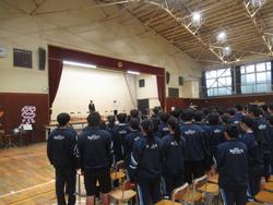 いよいよ「合唱コンクール」が明日に迫ってきました。前日の今日は、体育館で吹奏楽部の発表がありました。迫力のある演奏と特別参加の生徒によるダンスパフォーマンスもあり、たいへん盛り上がりました。その後、全校合唱の練習、明日の連絡・諸注意があいました。