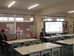 来年度入学予定の新入生の保護者で、選択制の利用を考えている方のための説明会です。5校時の授業を自由参観し、その後、図書室で説明会を行いました。