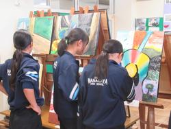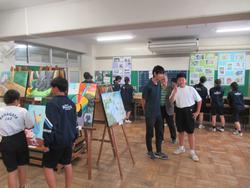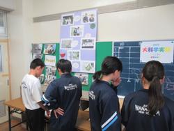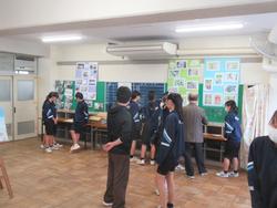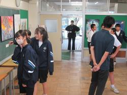 1階の多目的室で、文化部の作品展示を行いました。この日から3日間、学年別に見学を行います。この日は1年生が多く見学に訪れ、たいへん盛況でした。
