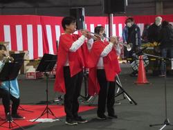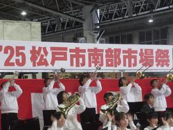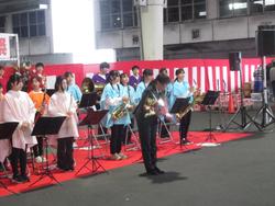 本校吹奏楽部が、南部市場で開催された『南部市場まつり』に招待され、演奏を披露しました。朝10時からの演奏で、小雨の中でしたがたくさんの来場者の方が鑑賞し、大きな拍手をいただきました。