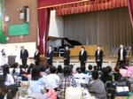 自分のクラスを確認して、体育館で第1学期始業式が行われました。最初に転入してきた先生方の紹介がありました。児童会の代表児童の言葉は、しっかりしていて、すばらしかったです。