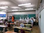 今日から給食が始まりました。各教室を回ってみると、みんな給食再開を楽しみにしていたようで、ニコニコしていました。準備の時間もウキウキとしていました。先生方は、4月2日(木)に行った研修通りに衛生面・安全面のチェックをしっかりしていました。