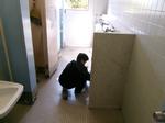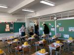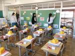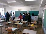 今日の午後から6年生が明日の入学式の準備をしています。体育館、1年生の教室、トイレ、下駄箱などを掃除して、きれいに飾り付けをしています。