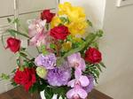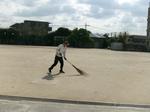 事務室のみなさんが、お花をきれいに 生けてくれたり、校庭をきれいに掃いて くれたりしています。 |